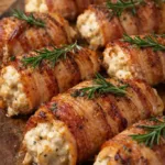 - Wrap two slices of bacon around each stuffed chicken breast, securing with toothpicks if needed.
