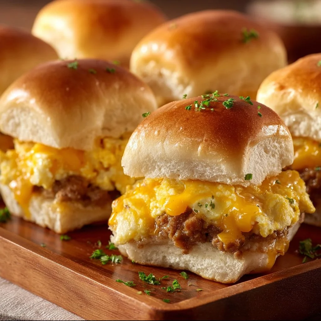 Delicious breakfast sliders packed with fluffy eggs, melted cheese, and your choice of toppings, perfect for any occasion.