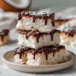 Delicious coconut bars with a satisfying texture and a chocolate drizzle, perfect for a sweet snack or party dessert.