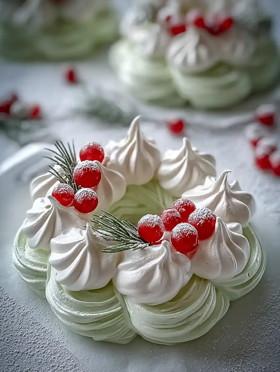 Think of them as a festive, pavlova-meets-cookie moment: crisp, delicate rings of vanilla meringue piped like mini wreaths, baked low and slow until dry and marshmallowy within. Once cooled, each wreath gets a swoop of softly sweetened whipped cream and a tangle of fresh berries, raspberries, blueberries, blackberries, or sliced strawberries, plus optional mint or pomegranate “holly.” They’re naturally gluten-free, feel feather-light after a big meal, and look like they came straight from a pastry window. If you’re new to meringue, don’t stress, clean tools, patient baking, and a little know-how make these nearly foolproof.